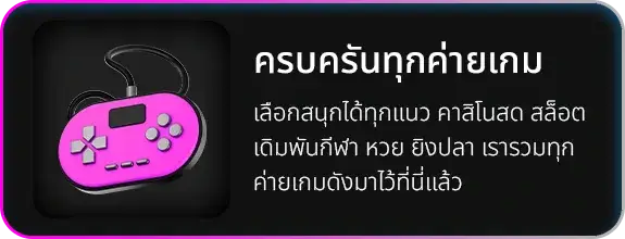1. เกมครบวงจร – มีทั้งสล็อตออนไลน์ คาสิโนสด กีฬา และเกมไพ่ยอดนิยม เช่น บาคาร่า รูเล็ต เสือมังกร