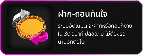 2. ระบบฝาก-ถอนรวดเร็ว – ใช้เทคโนโลยีล่าสุดเพื่อให้ทำรายการได้ภายในไม่กี่นาที